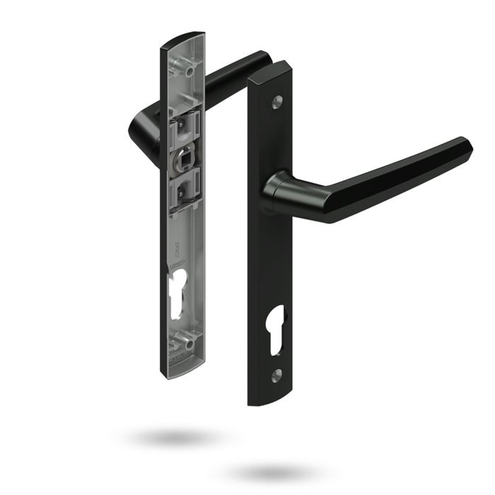Lockwood Palladium door furniture is supplied as a complete set, with both the internal and external plates.
