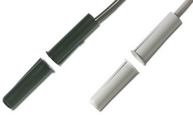 diameter magnetic contact with wire leads that uses no glue or screws to mount. Small ribs on the