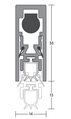- Fits into a 15mm wide x 35mm deep groove and retained in place with screw fixed stainless steel end plates.