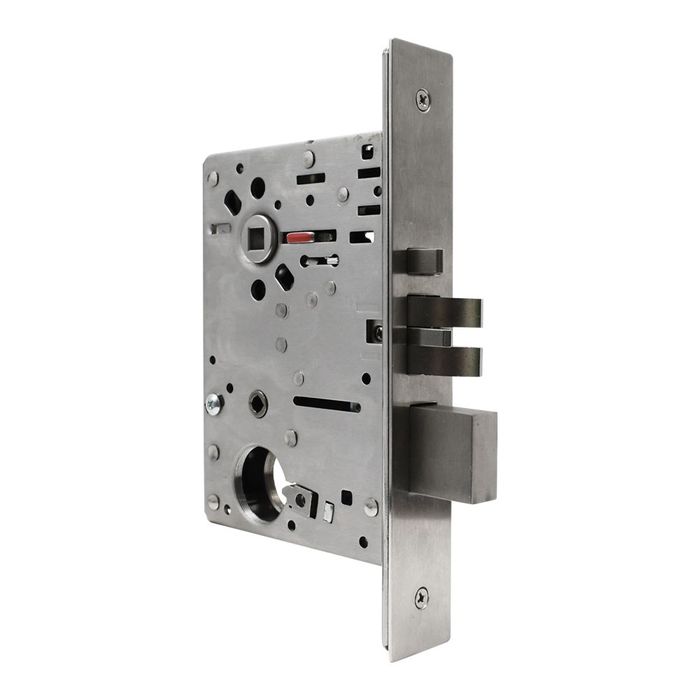 The McGrath Locks F54 ANSI mortice lock is a Grade 1, heavy duty lock to suit the Bardon. Constructed in stainless steel for extra durability with a reversible latch and 1" throw deadbolt, it is designed for commercial applications. The lock has a 70 mm backset and accepts threaded Kawneer cylinders.