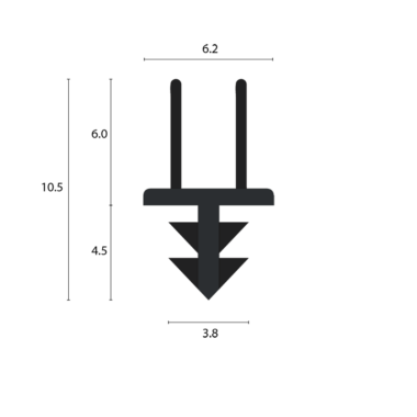 This rigid PVC base seal has co-extruded flame retardant, twin flexible smoke and acoustic fins. It fits quickly and easily into a nominal 3mm (wide) by 5mm (deep) interference fit groove.