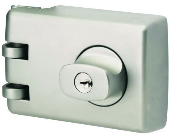 Suitable for hinged and some sliding doors. Opened by key from outside and by turn knob from inside when free. Internal key locks or unlocks turn knob.