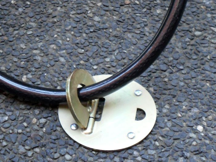The ANKA-LOOP is made from a 4mm steel base plate, a 10mm hinge, with a Stainless Steel hinge pin for strength and durability. The hinged lug is 6mm steel with a 36mm aperture for a chain or cable lock (ideal with our Alarmed Cable Lock).